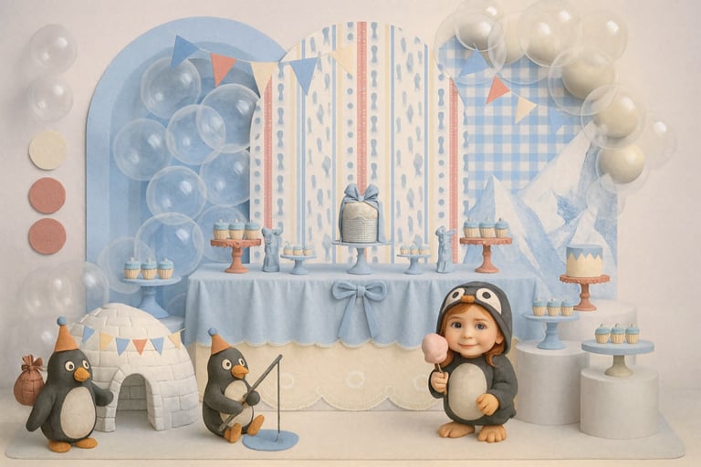Desenvolvimento da Paleta de Cores: Selecionar um conjunto de cores harmonioso que servirá como guia para todos os elementos da festa, desde o painel principal até os laços das lembrancinhas.
